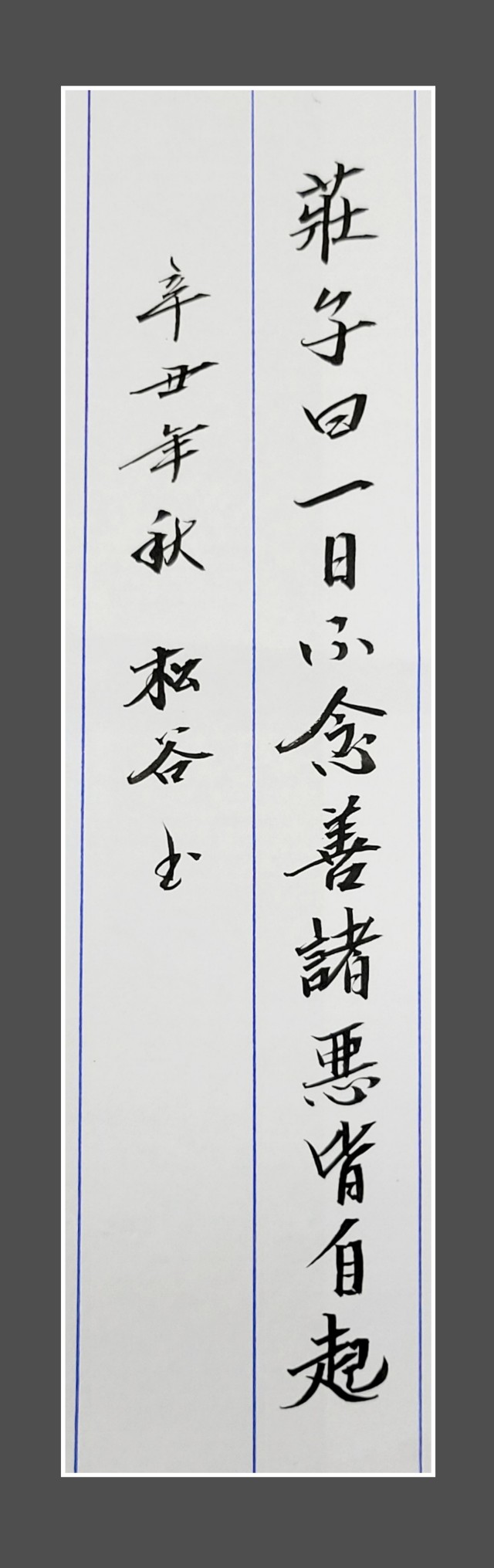 道法自然(도법자연) : 노자(老子)의 『도덕경(道德經)』에 人法地, 地法天, 天法道, 道法自然. (인법지, 지법천, 천법도, 도법자연)이란 글귀가 있지요. 이는 '사람은 땅을 본받고, 땅은 하늘을 본받고, 하늘은 도를 본받고, 도는 스스로 그러함을 본받는다'는 뜻이랍니다. 바로 道(도)의 본 모습은 自然(자연)이라는 것이며 사람 또한 자연의 일부이기 때문에 억지로 꾸미지 않아야 자연스러워진다는 뜻으로, 세상사 모든 일이 억지로 되는 일은 없다. 억지로 만들기 위해서 애쓰기보다는 자연스럽게 때를 기다리는 것이 현명한 일이라는 가르침을 주는 글귀입니다.